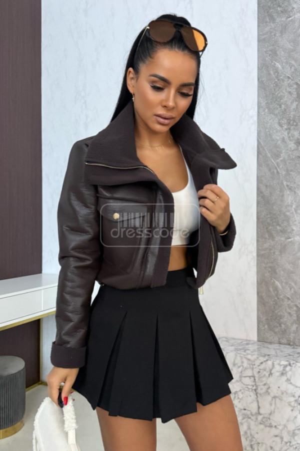 Tmavá barva činí z této bundy perfektní doplněk ke každému outfitu – od ležérních džín až po elegantní šaty. Měkká kožešinová podšívka a límec poskytují útulné teplo i v chladnějších dnech.