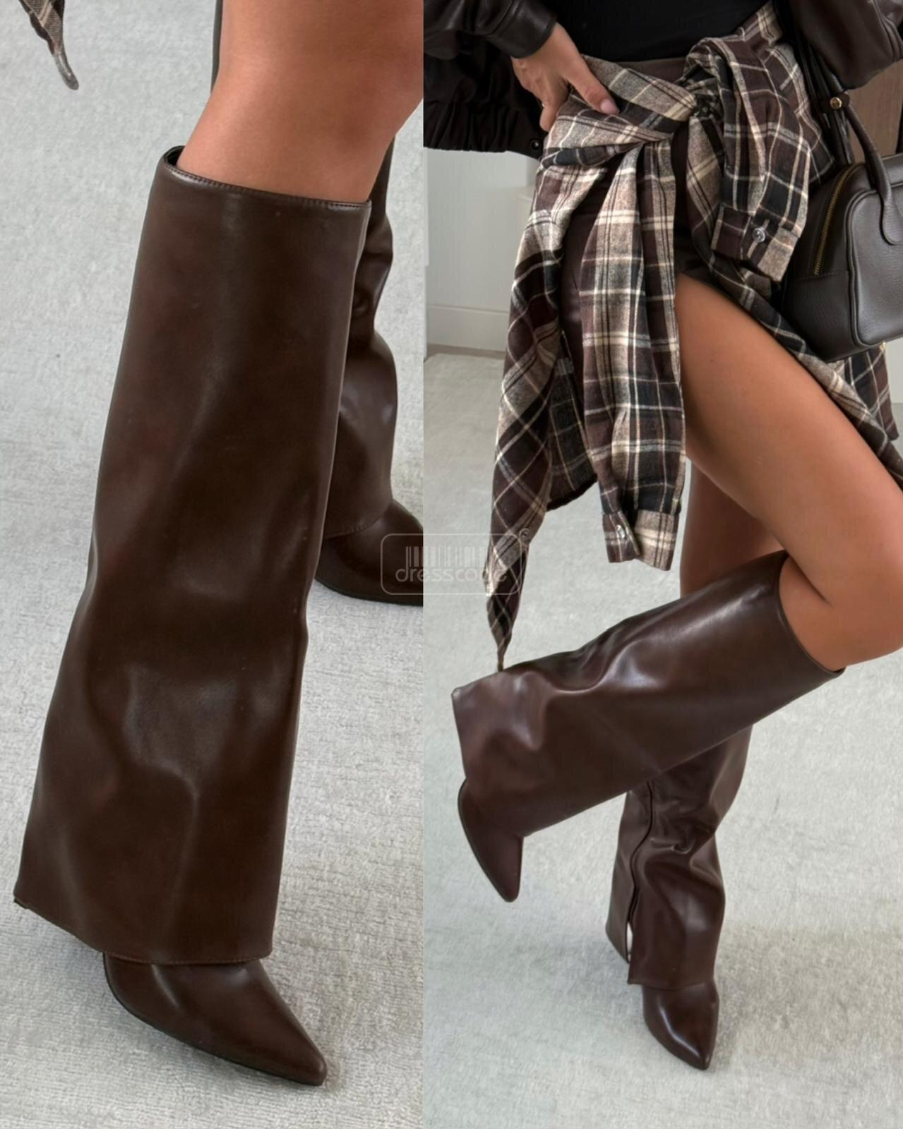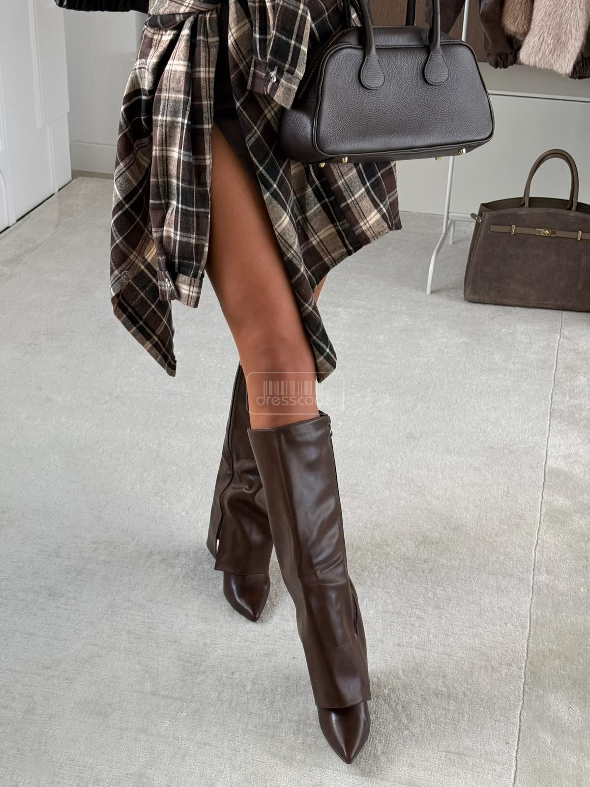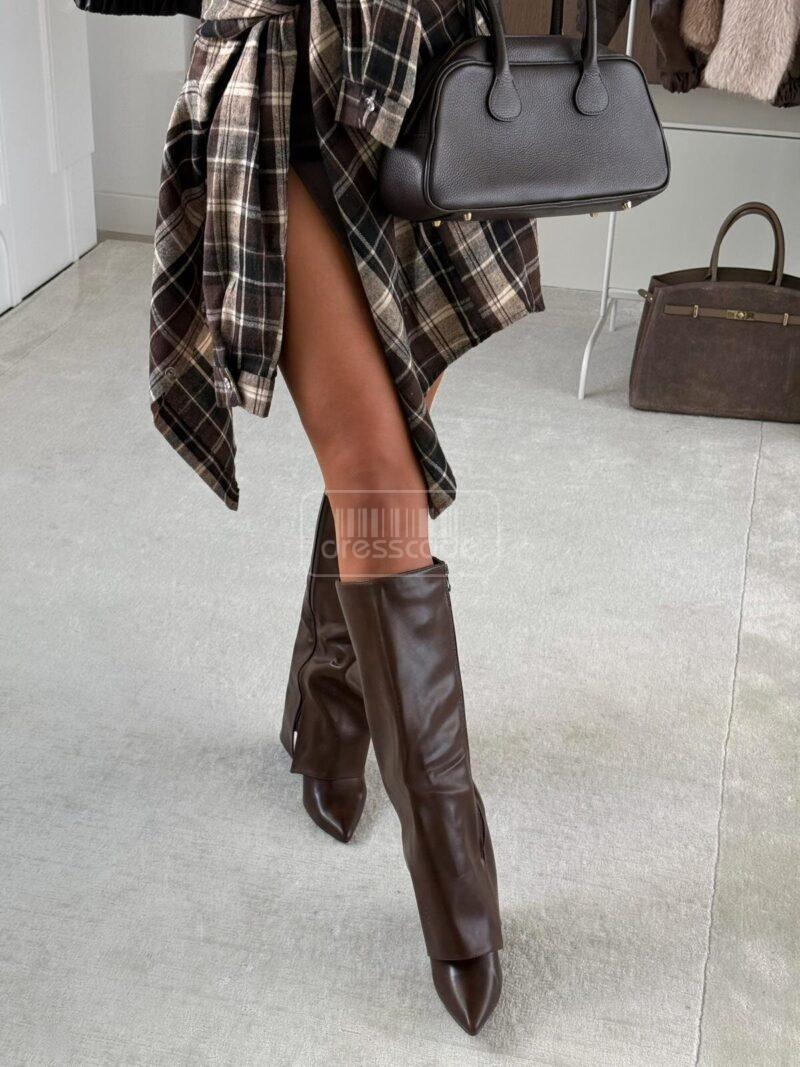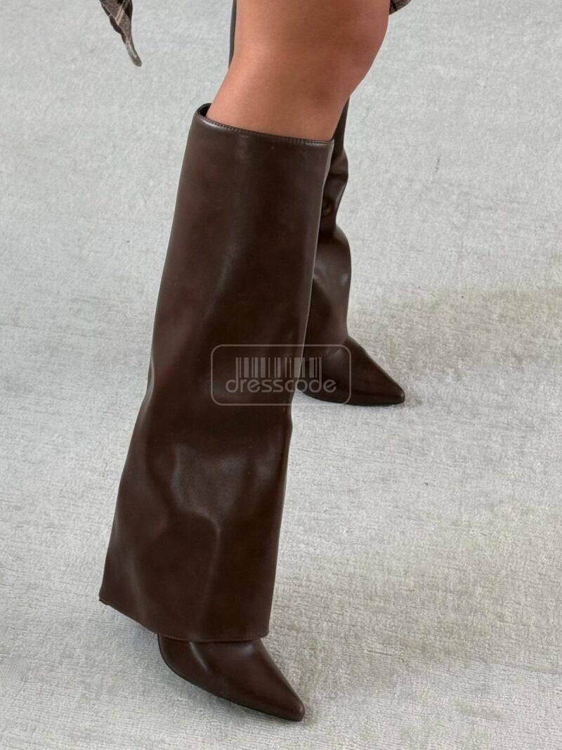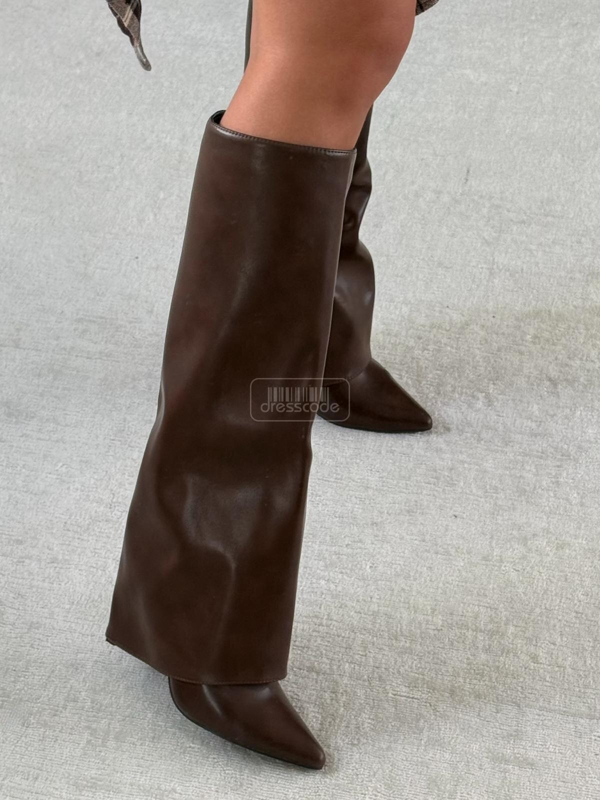 DomůDoplňky Lesklé kozačky Quentin čokoládové