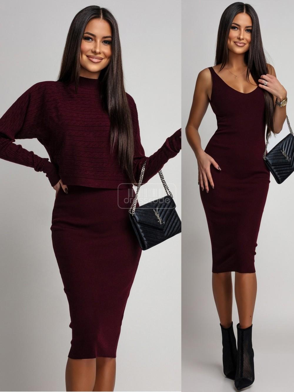 DomůLéto Komplet šaty + svetr Perfect Match bordó