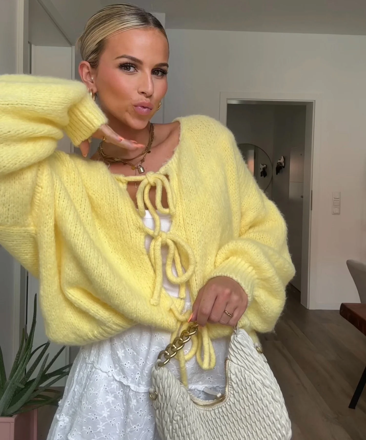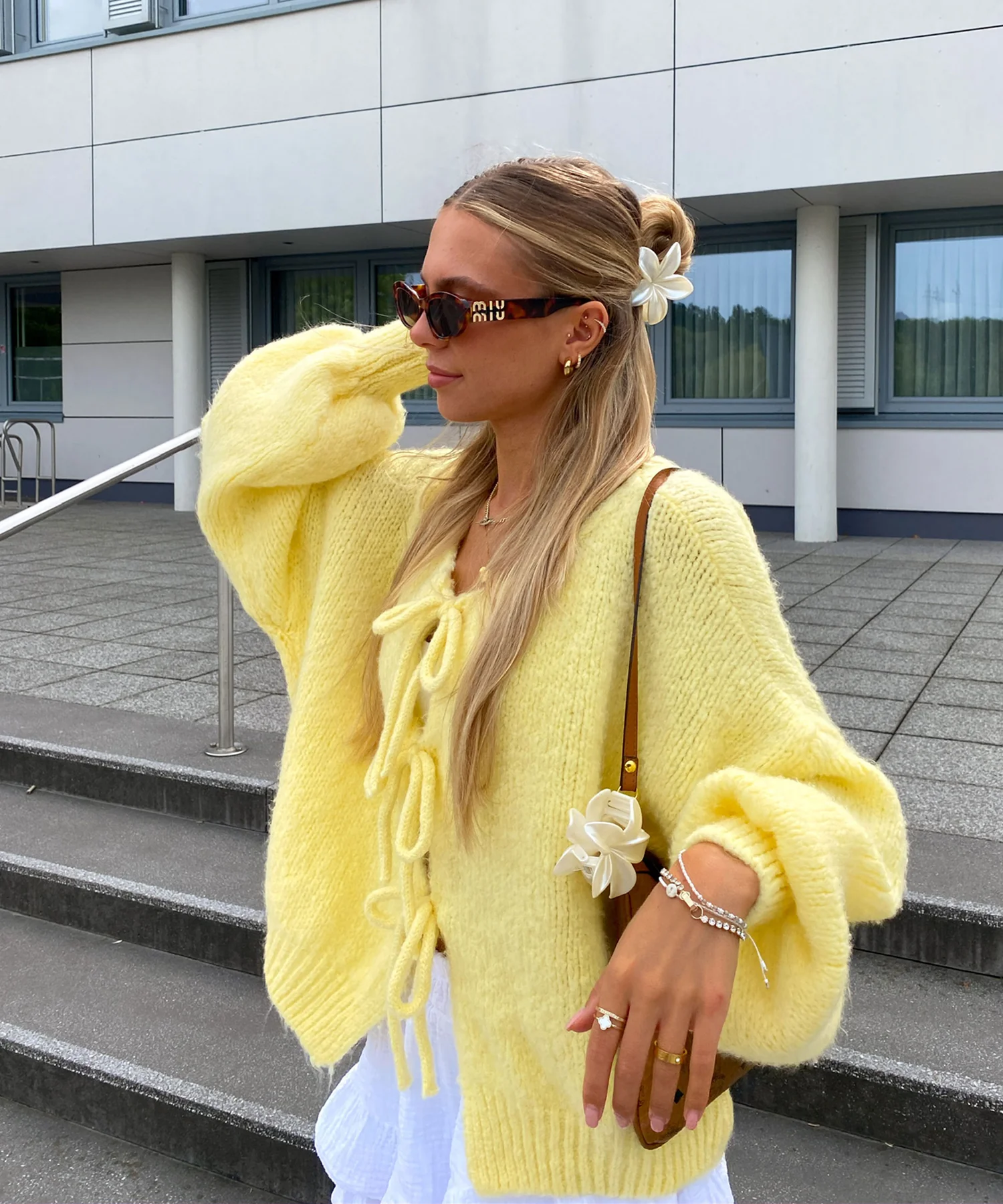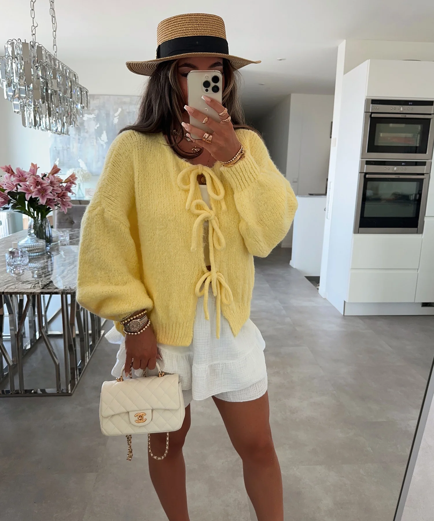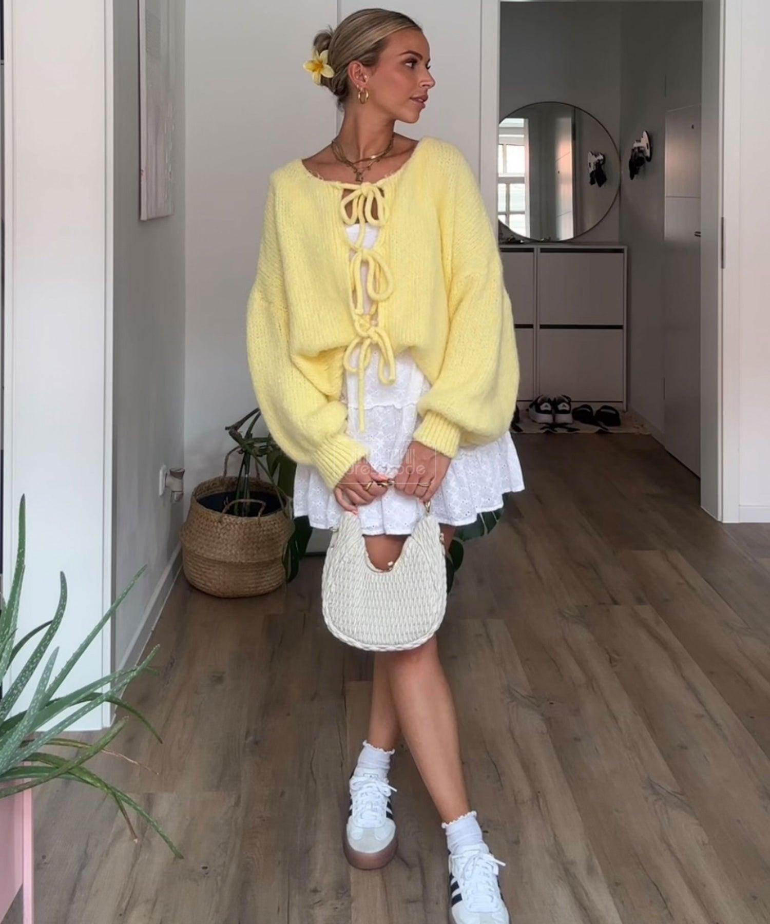 DomůLéto Oboustranný cardigan na vázání citrónkový