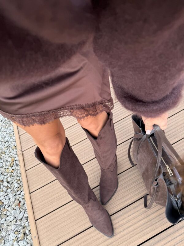 Semišové zpracování, nadrozměrný střih. Nastavitelné zapínání na zip. V pase na gumu.