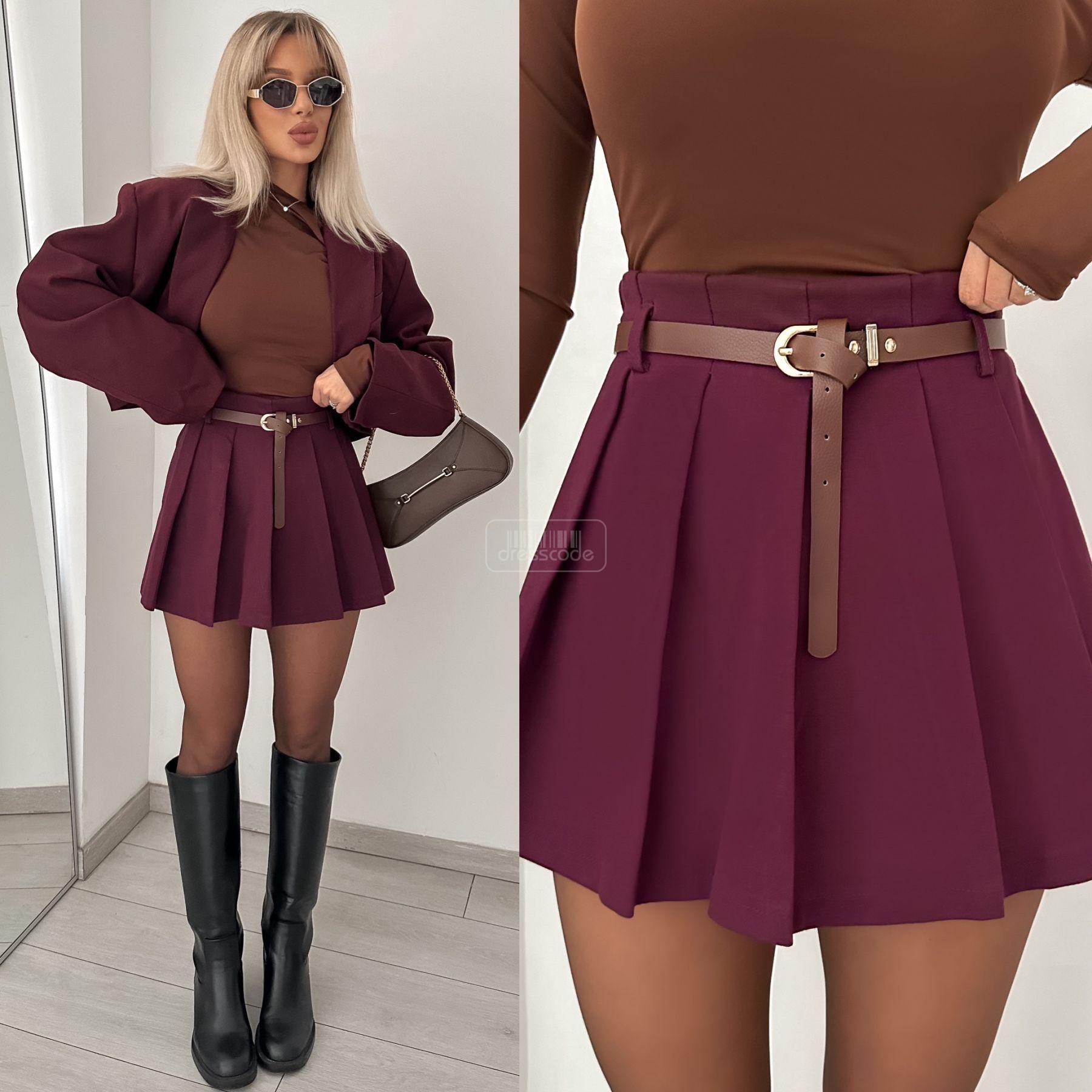 DomůNOVINKY Sukně skládaná bordó s páskem