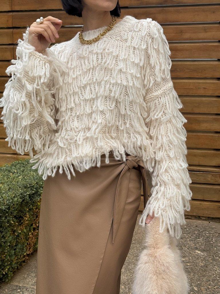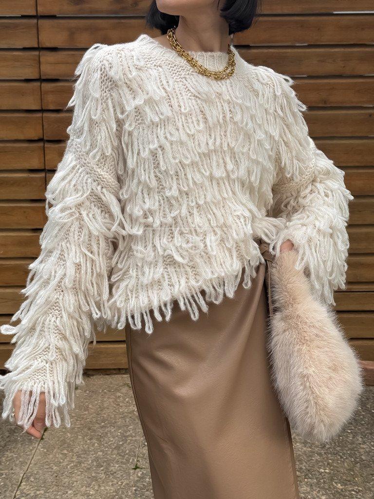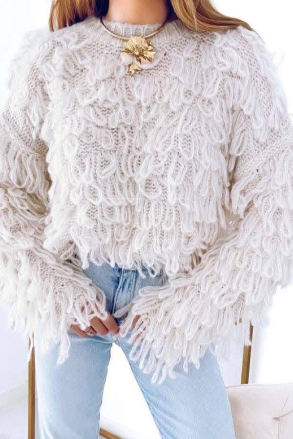 Svetr s úpletem a volnějším střihem.