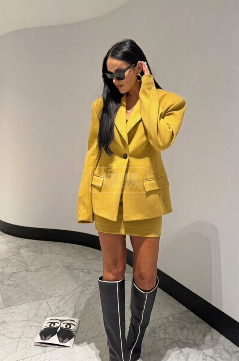 Vlněná sako LA MILLA v hořčicové barvě s prošíváním