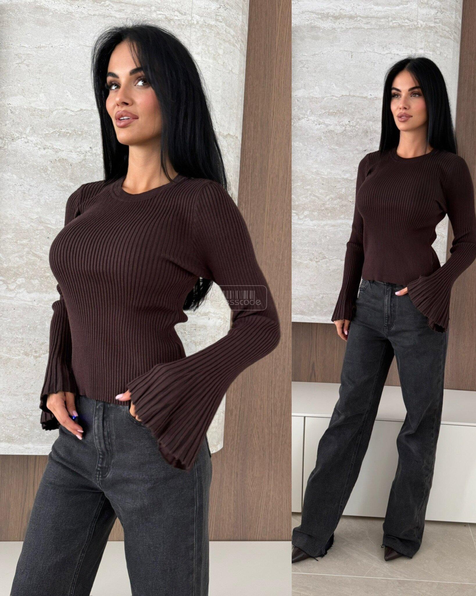 Halenka je z elegantního žebrovaného úpletu, který krásně přiléhá k postavě. Rozšířené rukávy jí dodávají lehký a módní vzhled a všestranný střih se hodí ke každodenním i elegantnějším outfitům. Ideální k sukním, džínám nebo kalhotám s vysokým pasem.